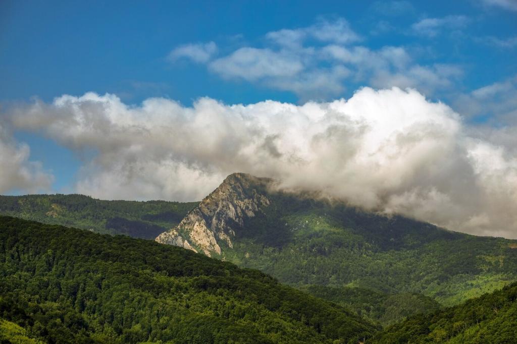 Morgendämmerung löscht Stratus oft, während abendliche Abkühlung ihn neu bildet. Sommerliche Labilität fördert Cumulus, winterliche Inversion stabilisiert Stratocumulus. Achte auf Luftfeuchte-Trends und Taupunkt. Abonniere unseren wöchentlichen Wolken-Guide und trainiere dein Auge mit kleinen, saisonalen Beobachtungsaufgaben.